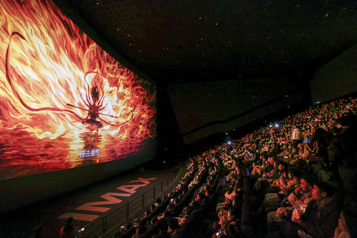 不雅众不雅看《哪吒之魔童闹海》。新华社发